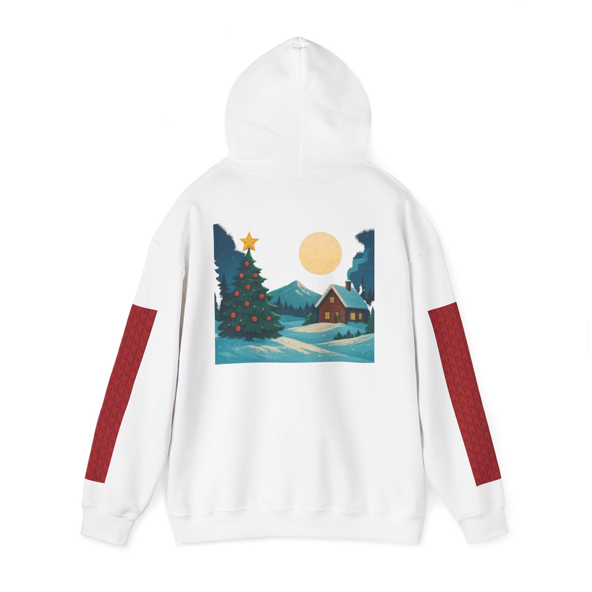 Christmas Hoodie - 'Merry Christmas' Santa Hat & Cozy Cabin Tree Holiday Pullover